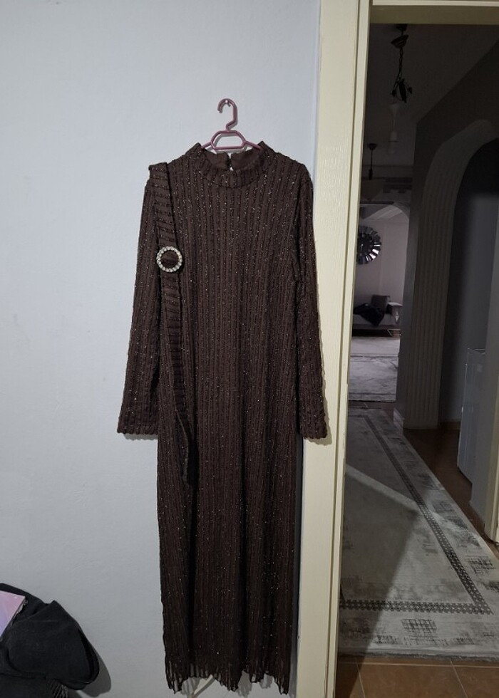 Kahverengi simli elbise
