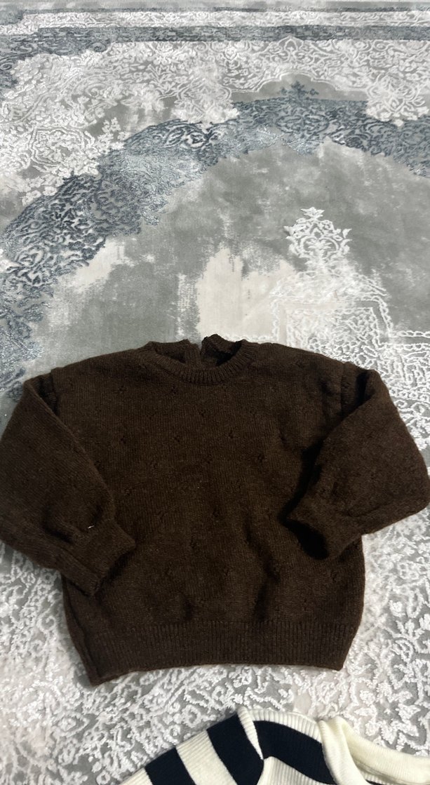 Kahverengi,siyah ve çizgili kazak. Erkek ve kız için uygundur. Toplam 3 kazaktır.
