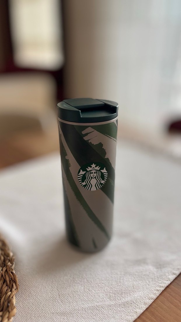 Bu kahverengi Starbucks termos bardak, güvenli kapak ve şık tasarımıyla içeceklerinizi sıcak tutar. ☕