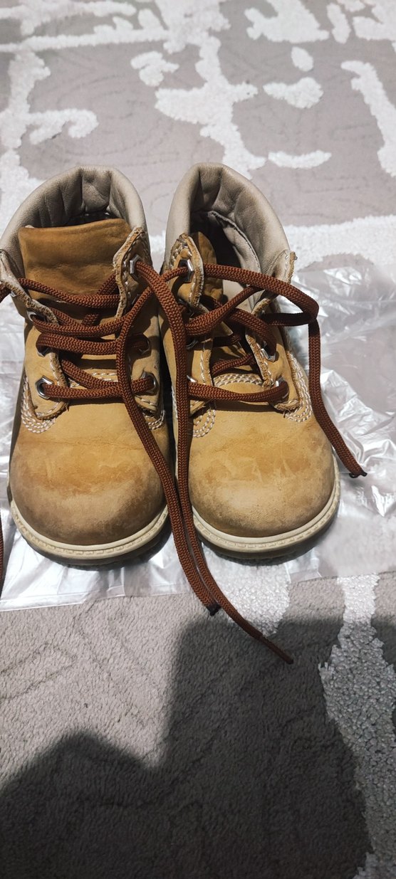 Kahverengi süet malzemeden yapılmış, parlak görünümlü ve bağcıklı erkek çocuk botu, trend ve rahat bir tarz sunar.