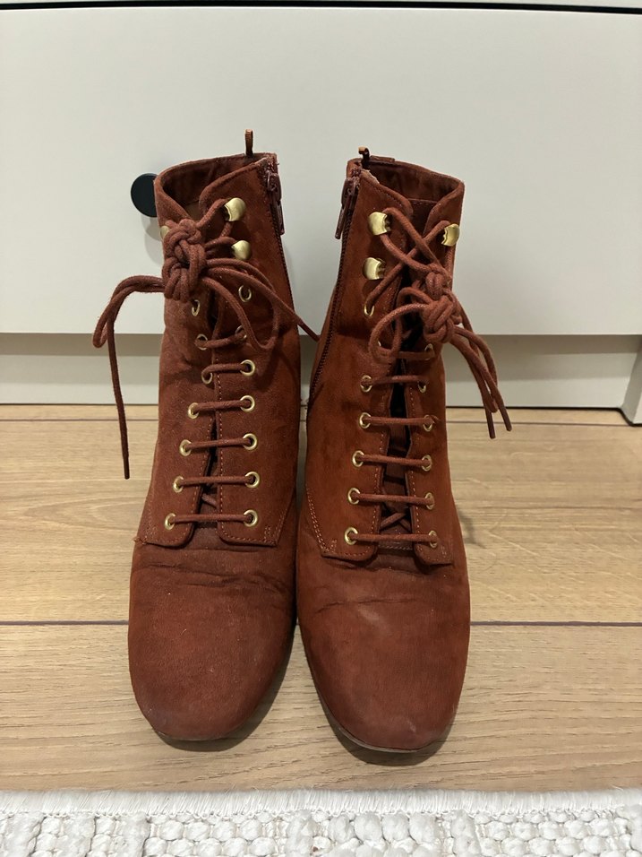 Kahverengi Süet Bağcıklı Topuklu Bot