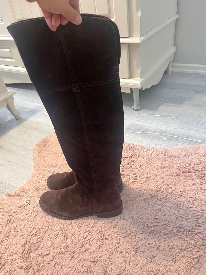 Sadece bir kez giyildi harika az bulunan harika bir modeldir kahverengi sıfır ayarında derisi çok kaliteli,çok rahat hotiç markadır.İçi polarlı kışın sıcak tutar.Baldır en ölçüsü resimde verilmiş olup boy tabandan yukarı 54 cm civarıdır.Numarası 39 ancak taraksız 39,5 numaraya kadar rahat olur kalıbı dar değildir.