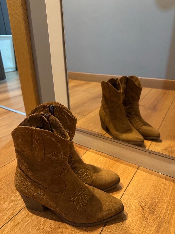 Kahverengi süet kadın botlar, dolgu topuklu ve tokalı, bohem tarzda günlük kullanıma uygun. İçi sıcak astar ve üzerindeki gold işlemeleri ile tarz ve şık
