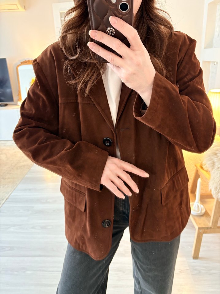 Kahverengi Süet Düğmeli Kadın Blazer