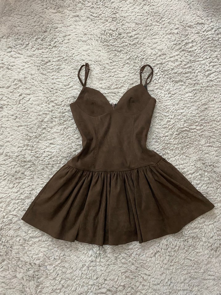 Yeni sezon Kahverengi renkli, mini boy elbise. Askılı süet elbise tek geldi devamı yok iç dış etiket kesik