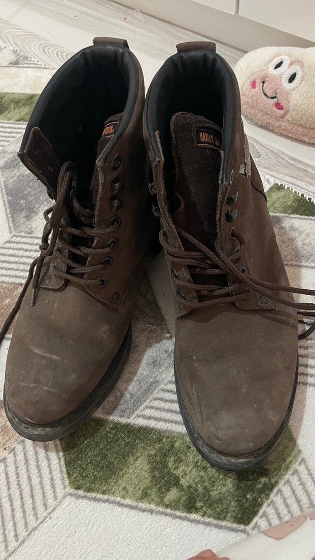 Kahverengi süet malzemeden yapılmış, tokalı erkek botları. Sokak stili ve günlük kullanım için uygun, desensiz ve rahat bir tasarıma sahiptir.