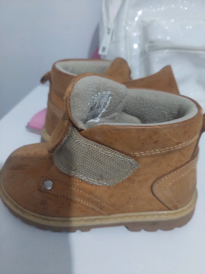 Kahverengi süet erkek çocuk botları, kolay kullanım için cırt cırtlı kapama ve gri iç astar içerir. Düz tasarımlı, sokak tarzında rahat bir modeldir.