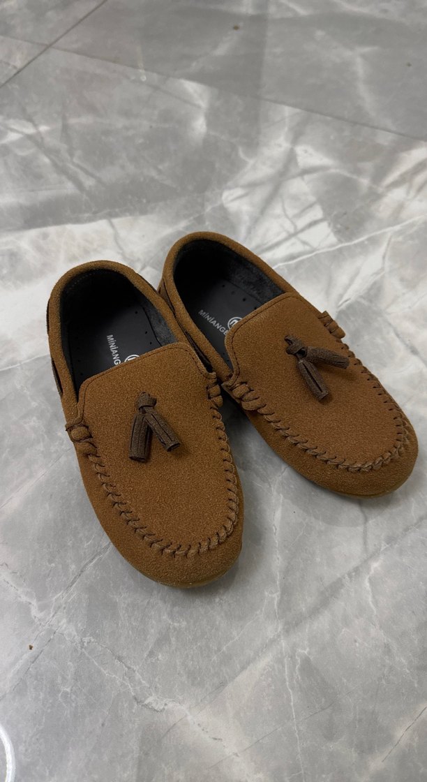 Kahverengi süet erkek çocuk loafer, püskül detaylı, klasik tarzda ve desensiz, yumuşak dokulu ayakkabı. Trendy casual görünüme uygundur.