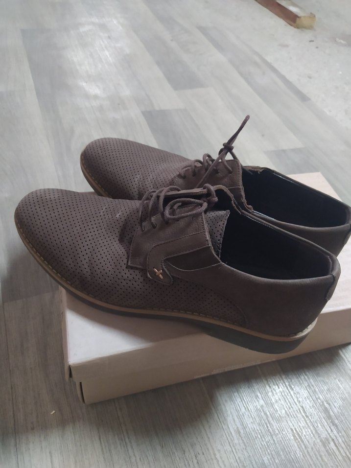Kahverengi süet erkek klasik ayakkabı, tokalı tasarım ve delikli yüzey detaylarıyla günlük iş kullanımı için uygundur. az kullanılmıştır