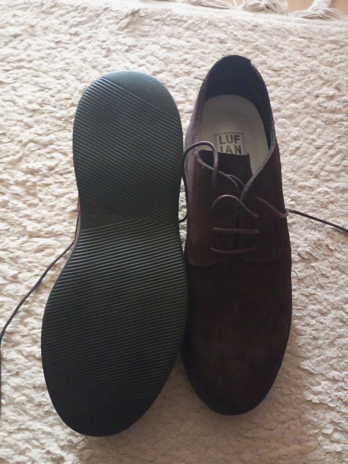 Kahverengi süet erkek klasik ayakkabı, minimalist ve normcore tarzda. Trendy casual kullanım için uygun, günlük kullanıma şıklık katıyor. Tabanı kaymaz desenli.