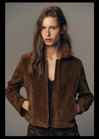 Kahverengi Süet Fermuarlı Kadın Ceket