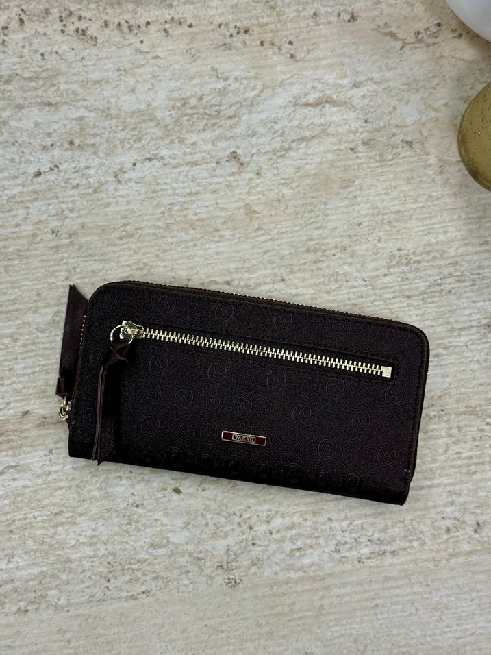 Kahverengi süet malzemeden yapılmış, yılan desenli ve fermuarlı kadın cüzdanı, klasik zarafet ve rahat gotik tarzı bir arada sunar.