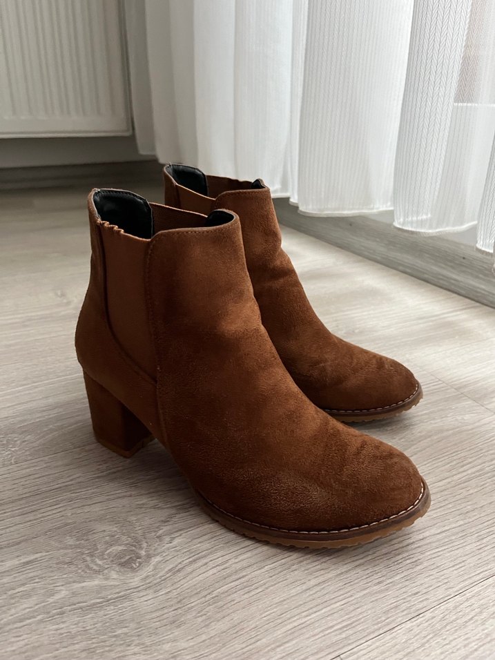 Kahverengi süet kadın bot 6 cm topuklu.