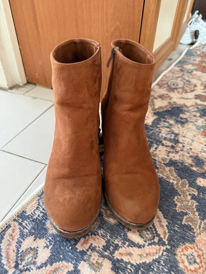 38 numara #Kahverengi #süet #kadın #botları, topuklu rahat ve bohem tarzda, günlük kullanıma uygundur. Herhangi bir deformesi yoktur sayılı kullanıldı #iadeyok