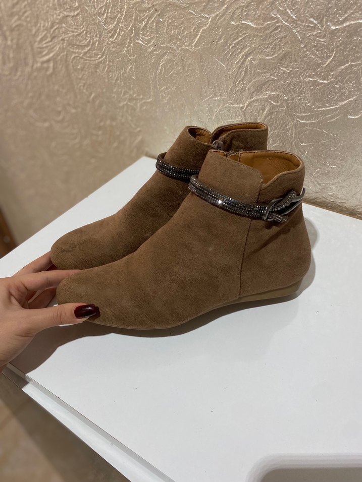 Kahverengi süet kadın botlar tokalı ve dolgu topuklu olup, rahat ve trend bohem tarzıyla günlük kullanıma uygundur.