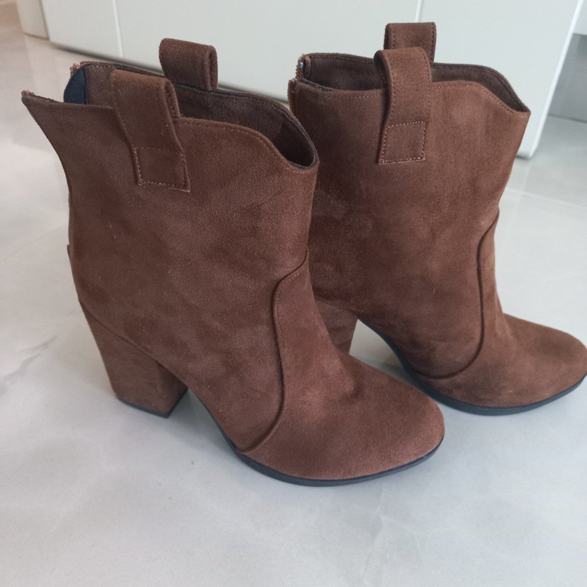 Kahverengi süet kadın bot. Blok topuklu. Günlük kullanıma uygun, rahat ve şık bir tarza sahiptir.İhtiyaç fazlası.