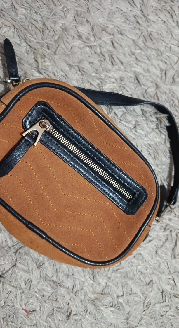 Kahverengi süet kadın çanta, fermuarlı detaylı ve yılan desenli, trend sokak stili ve günlük kullanım için uygun. arka kısım kemer takma yeriydi ben çıkardım söktüm yani o delik yerleri izi kaldı onun dışında sorunu yoktur yenidir iki taraftan da kapanıyor fermuarlı yeri
