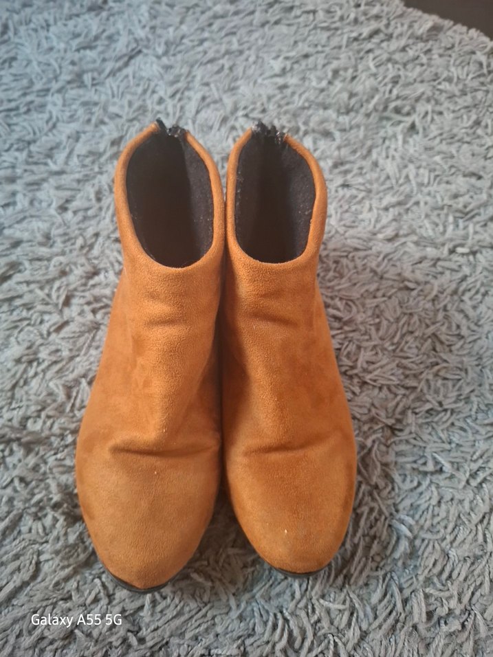 Kahverengi süet kadın botlar, dolgu topuklu ve kürk detaylı, trend günlük stil için uygundur. Her gün kullanım için ideal.