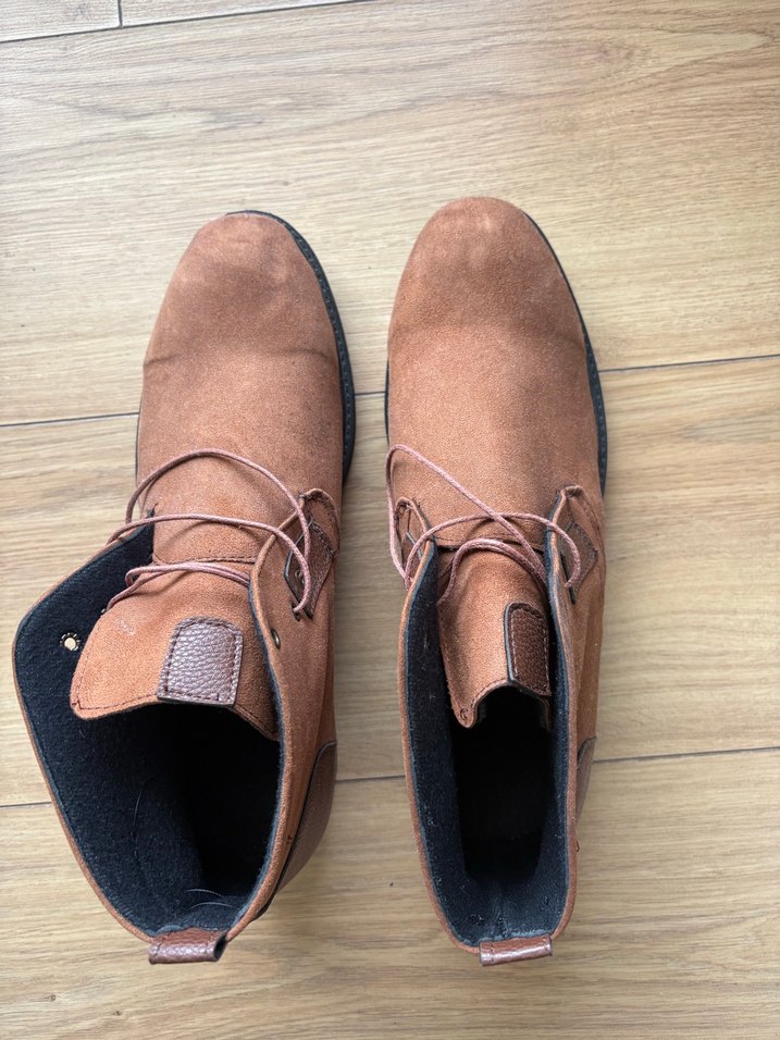 Kahverengi süet kadın botlar, dolgu topuk ve tokalı detaylara sahip. Rahat ve şık sokak stili için uygun, günlük kullanıma ideal.