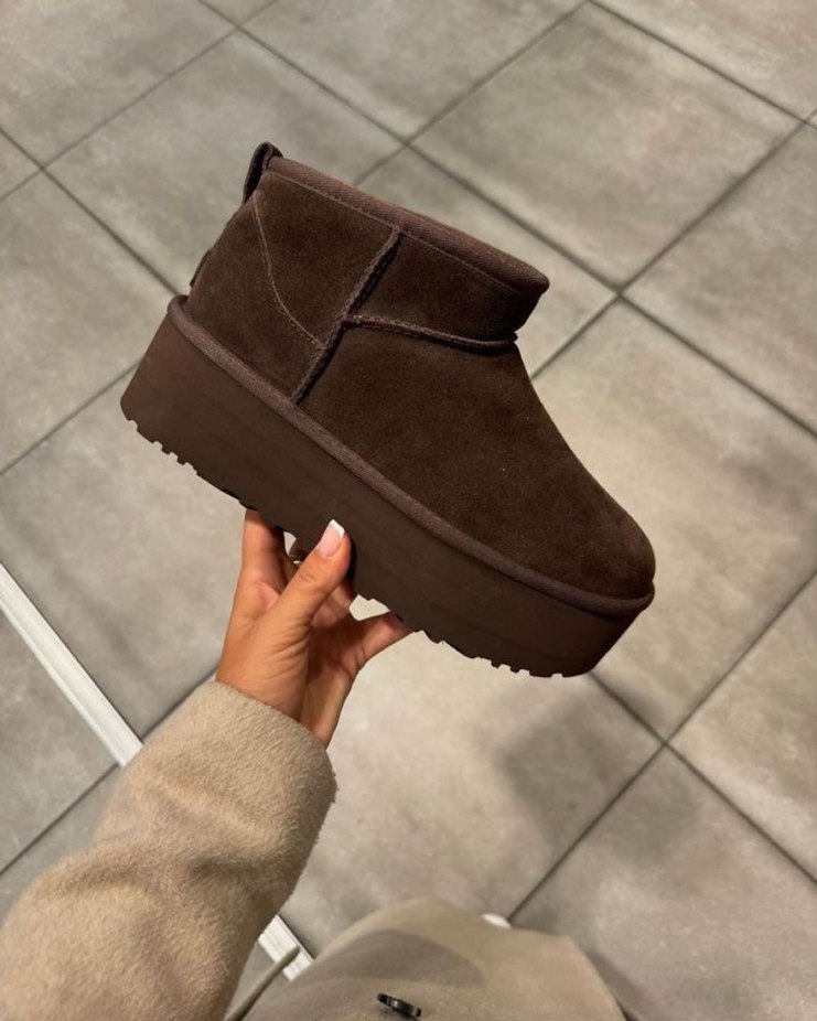 Kahverengi süet dolgu topuk kadın botları, rahat ve şık sokak stiliyle günlük kullanıma uygun.