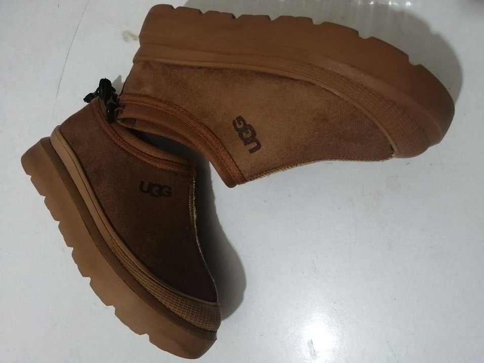 Kahverengi süet kadın terlik, dolgu topuk ve fermuarlı yanlara sahip. Sokak stiline uygun, koyu renk ve desensiz rahat tasarım.