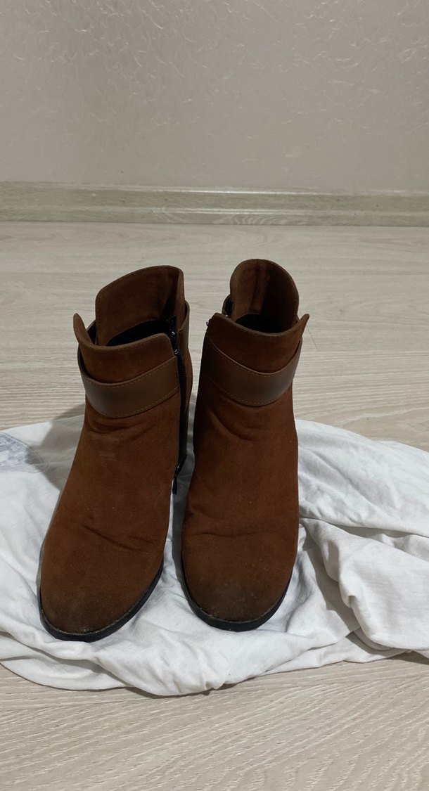 Kahverengi Süet Kadın Dolgu Topuklu Bot