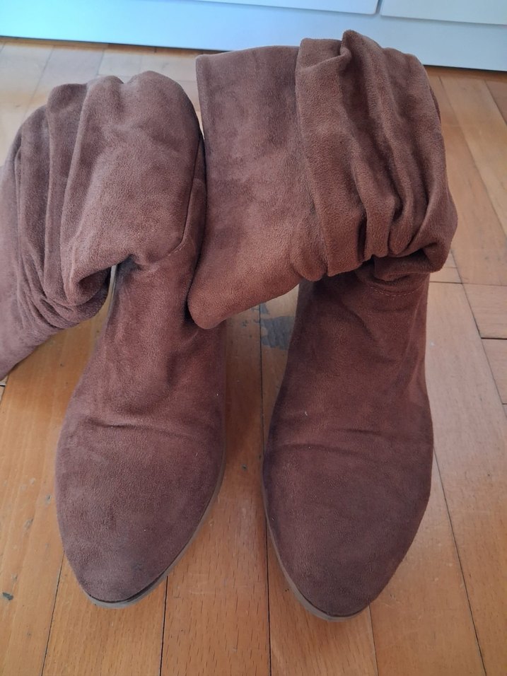 Kahverengi süet kadın botlar, dolgu topuklu ve tokalı detaylıdır. Günlük kullanıma uygun, rahat ve bohem tarzda tasarlanmıştır. 37 Numaradır