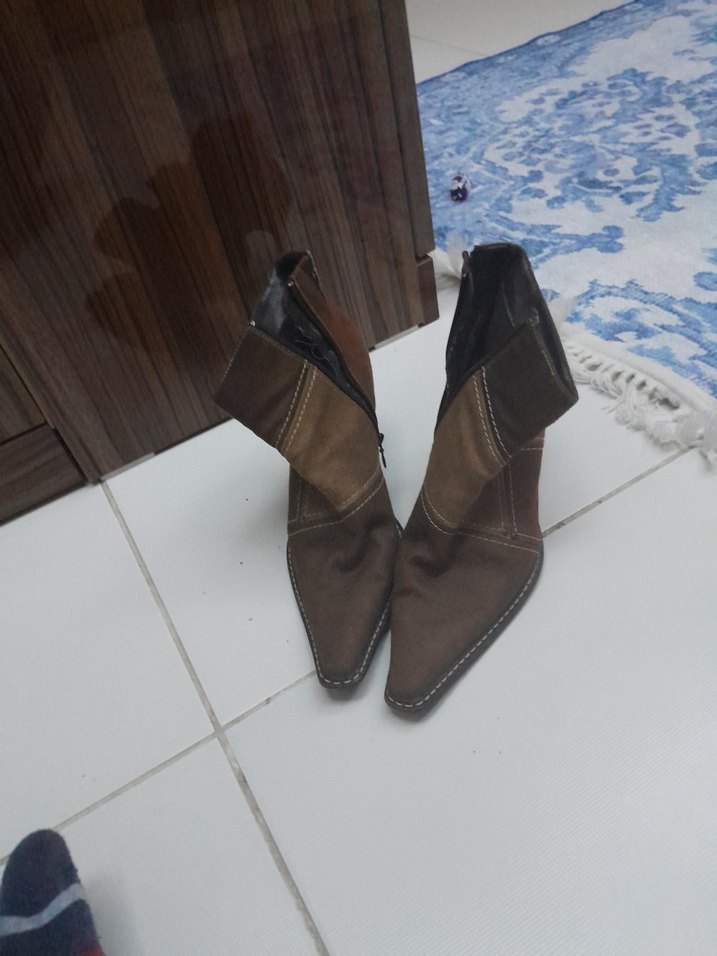 Kahverengi Süet Kadın Dolgu Topuklu Bot