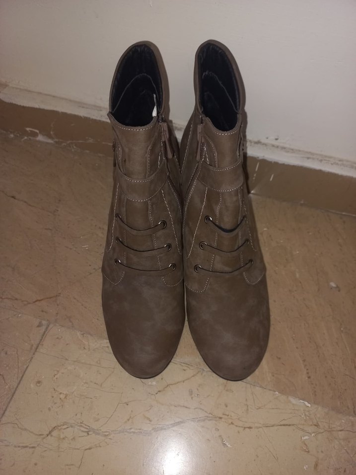 Kahverengi süet kadın botlar, dolgu topuklu ve tokalı detaylara sahip. Desensiz, günlük kullanıma ve sokak stiline uygundur. hiç kullanılmadı