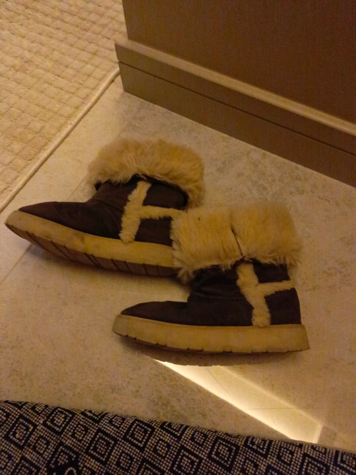 Kahverengi süet kadın botları, dolgu topuk ve kürk detaylarıyla bohem sokak stilini rahatlıkla birleştirir. Günlük kullanım için uygundur.