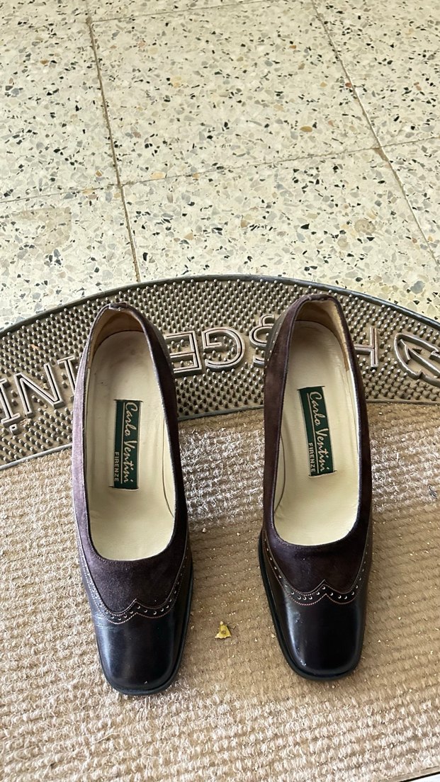 Kahverengi süet malzemeden, yılan desenli, tokalı ve blok topuklu kadın klasik ayakkabısı, ofis kullanımı için uygundur. Topuk boyu yedi santim hiçbir defosu yok makul teklifler kabul çok tarz bir ayakkabı topuklu giyemediğim için satıyorum dolap bekliyordu sadece bir kez kullanıldı Marka: Carlo Ventin. Topuk boyu yedi santim hiçbir defosu yok makul teklifler kabul çok tarz bir ayakkabı topuklu giyemediğim için satıyorum dolap bekliyordu sadece bir kez kullanıldı