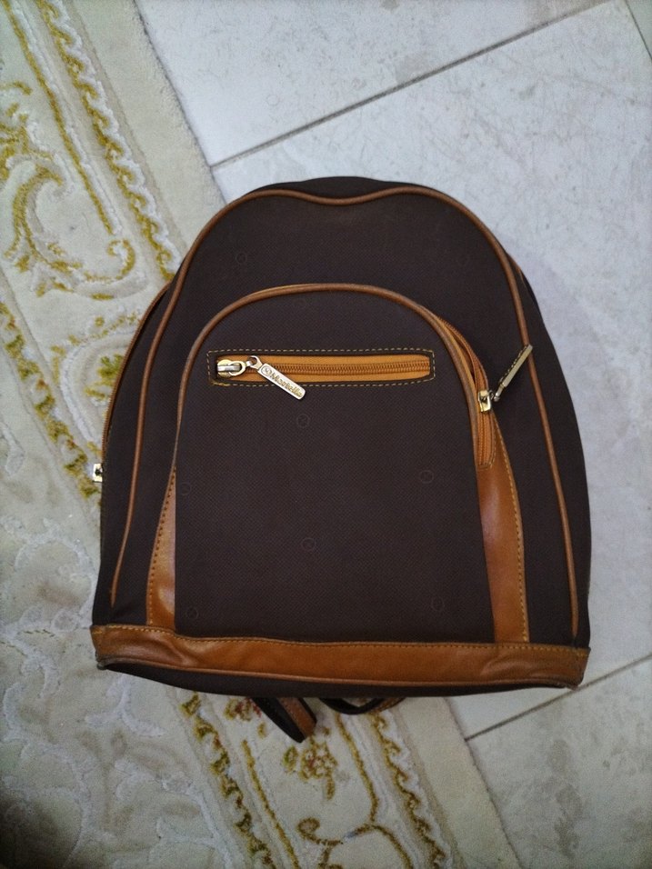 Kahverengi süet malzemeden yapılmış, fermuarlı detaylara sahip kadın sırt çantası. Minimalist ve geleneksel tarzda, günlük kullanıma uygun.koselerde defolar var birde ana gözün fermuar klipsi yok ama çanta açılıyor