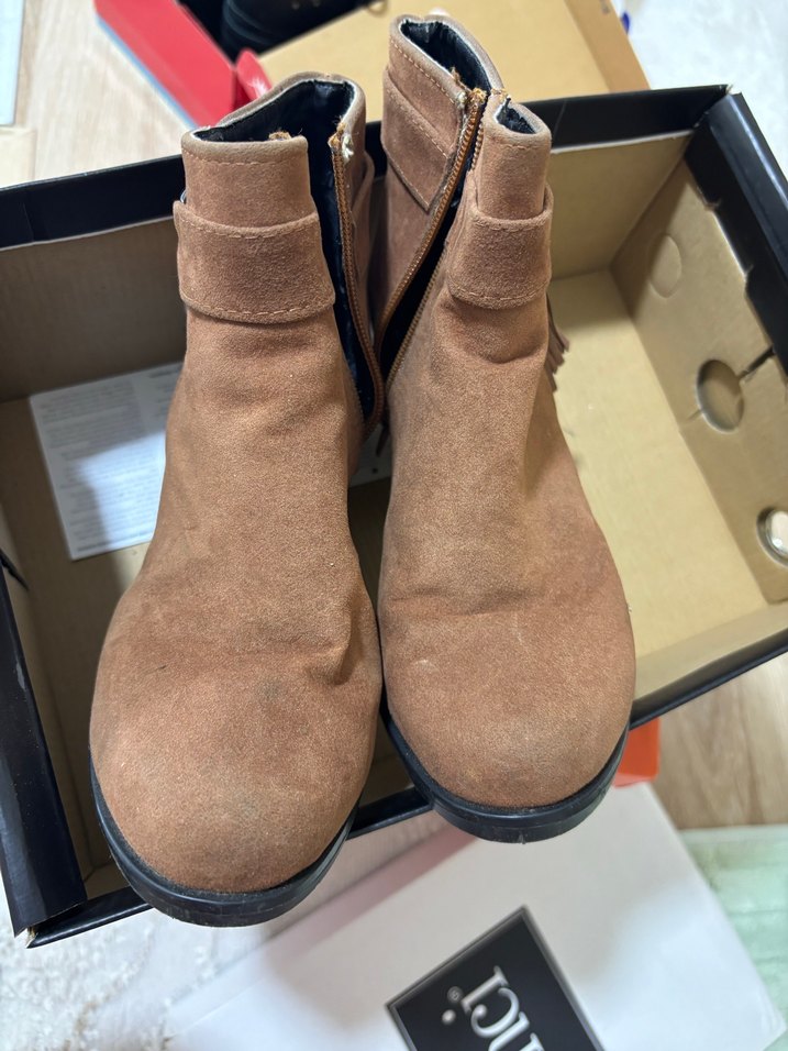 Kahverengi süet kadın botlar, dolgu topuklu ve tokalı detaylıdır. Sokak stiline uygun, günlük kullanıma rahat ve trend bir görünüm sunar.