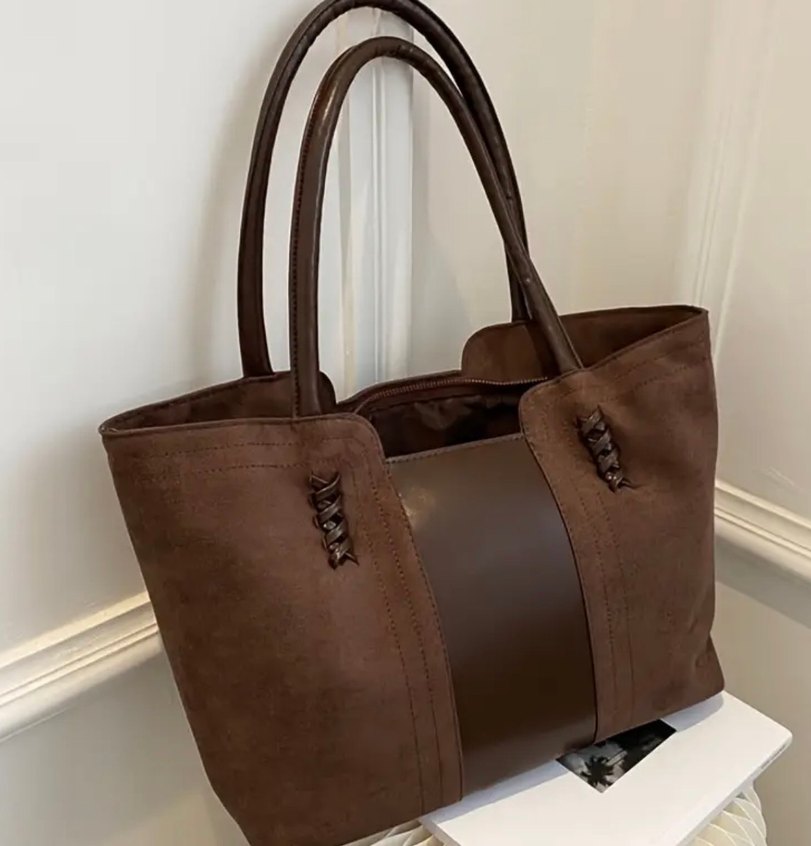 Kahverengi süet malzemeden kemer detaylı kadın çantası, günlük kullanıma uygun sade ve şık tasarıma sahip. Düz yüzeyli ve sağlam saplıdır.