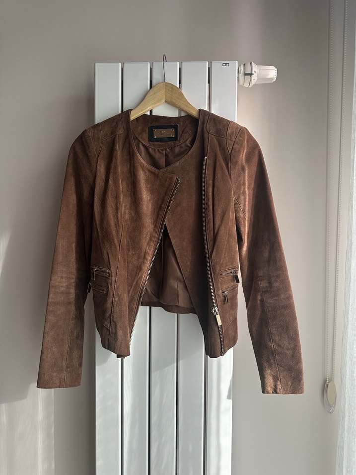 Fitted kesim kahverengi süet ceket, kemerli ve notched yaka detaylıdır. Normal midi uzunlukta ve askılı kolludur, günlük sokak stili için uygundur. Deri ceket uzunluğu 47 cm Kol uzunluğu 63 cm