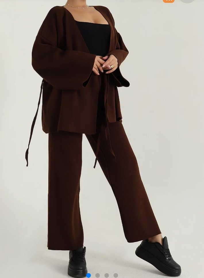 Kahverengi Süet Kemerli Midi Kadın Takım