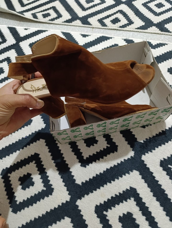 Kahverengi Süet Kemerli Topuklu Sandalet