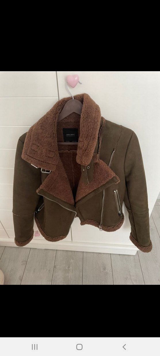 Kahverengi süet kumaştan, kısa kesim, kürk detaylı ve kesimli yakalı bu kadın ceketi, sokak modasına uygun rahat bir tarza sahiptir.