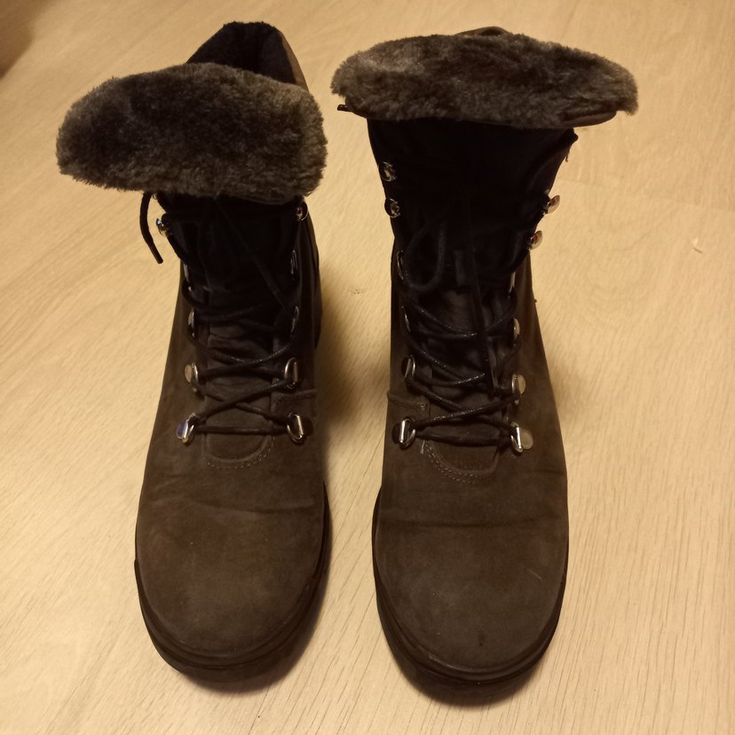 Kahverengi süet, kürklü detaylı, bağcıklı dolgu topuk botlar, rahat ve günlük kullanıma uygun.