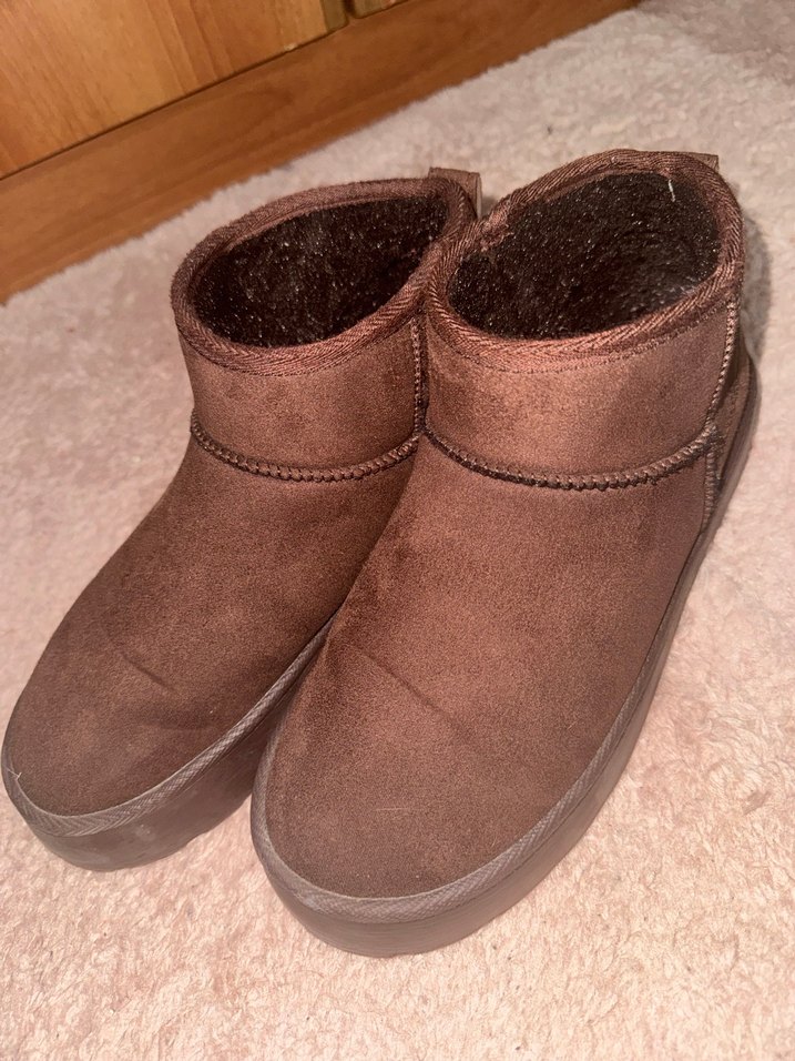 Kahverengi süet kadın bot, dolgu topuk ve içi kürklü detaylarla günlük kullanıma uygun sıcak ve şık bir görünüm sunar. Normcore tarzına uygundur. 2/3 defa giyildi .