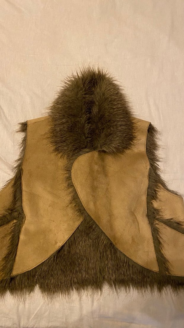 Bu kahverengi süet yelekHollandadan hediye gelmiş olup iki defa anca giyildi, kürk detaylı ve yakalıdır. Kısa ve vücuda oturan kesimiyle günlük kullanıma uygundur.