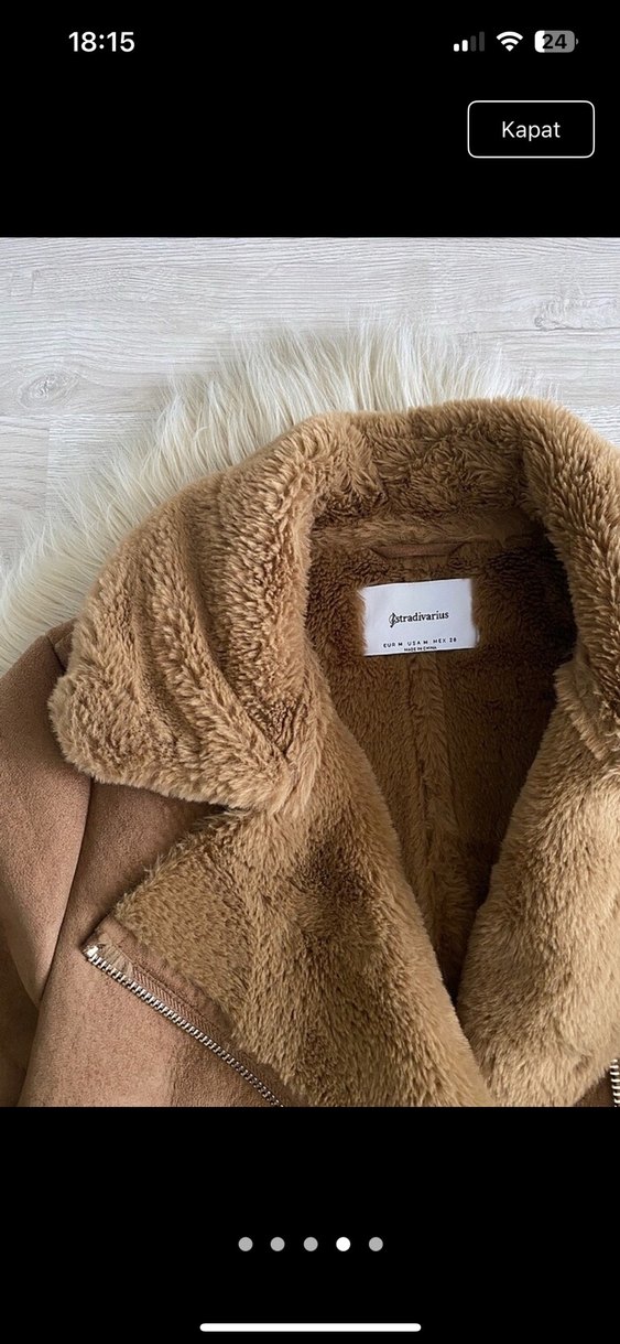 Kahverengi süet kumaştan yapılmış, kürklü detaylı, notched lapel yakalı, uzun kollu kışlık kadın ceketi. Normal boy ve regular fit modeldir, rahat ve basic tarzda tasarlanmıştır.