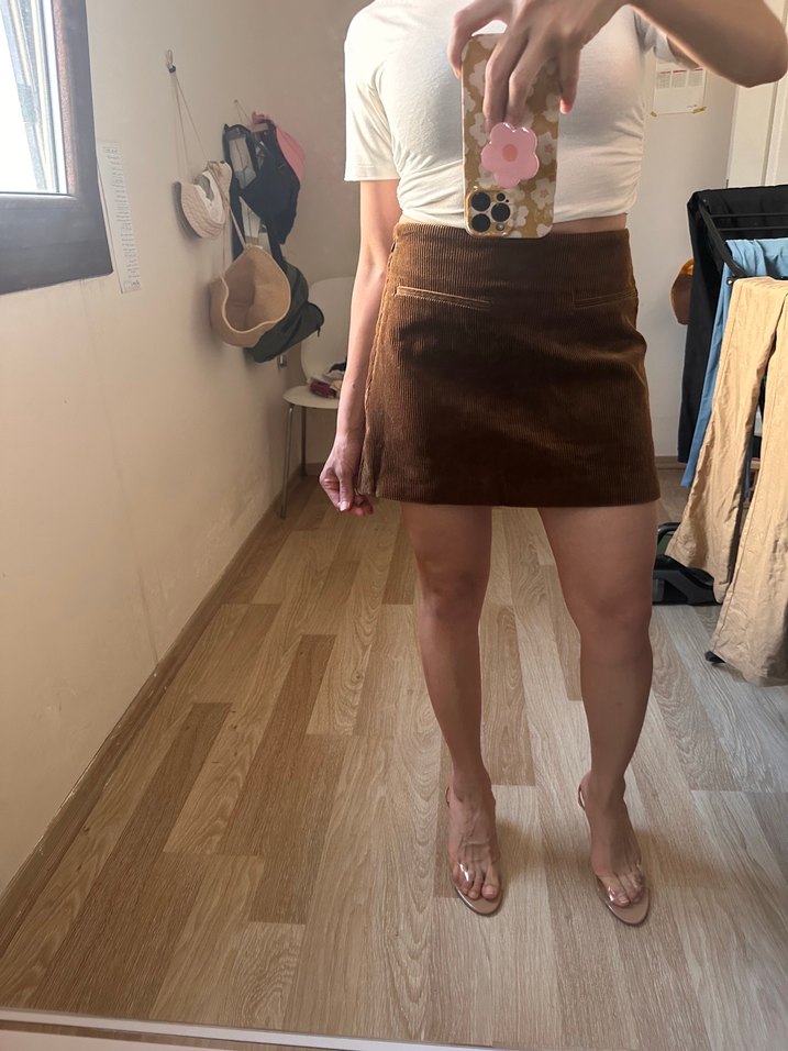 Kahverengi süet mini etek, fitted kesim ve desen içermeyen düz tasarımıyla günlük sokak modasına uygun. Zahmetsiz şıklık sunar. iade süresini kaçırdım yeni etiketli