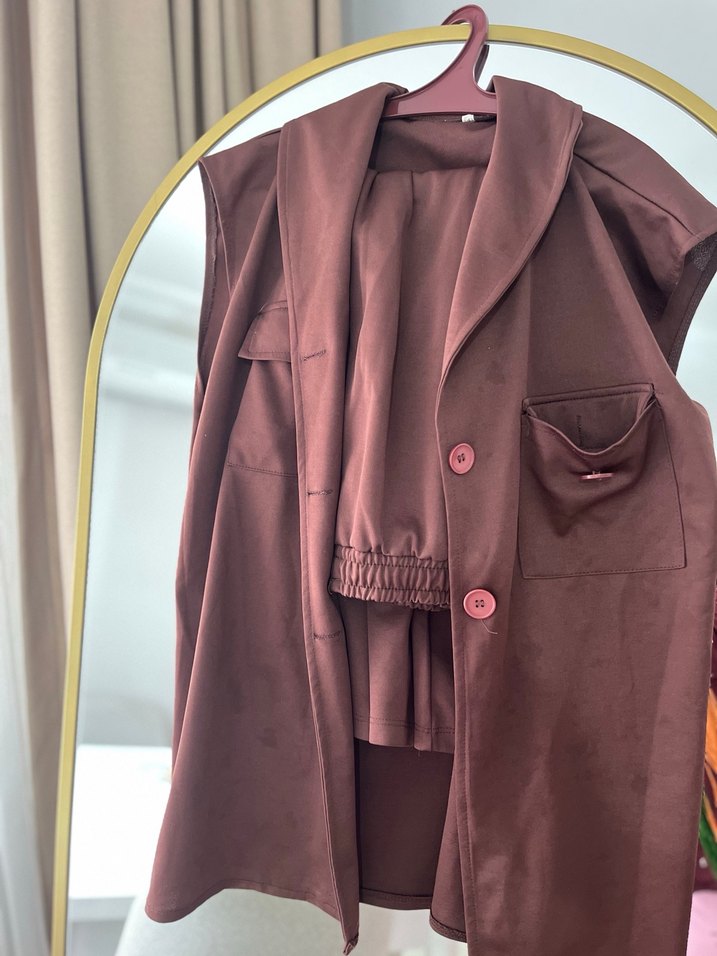 Kahverengi Süet Mini Kadın Yelek Ceket takım