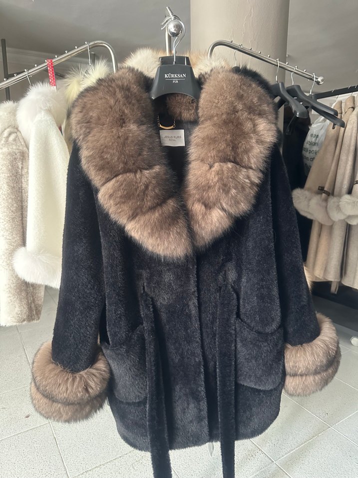 Kahverengi Süet Mini Kürk  orijinal Detaylı Kaban pek - Görsel 1