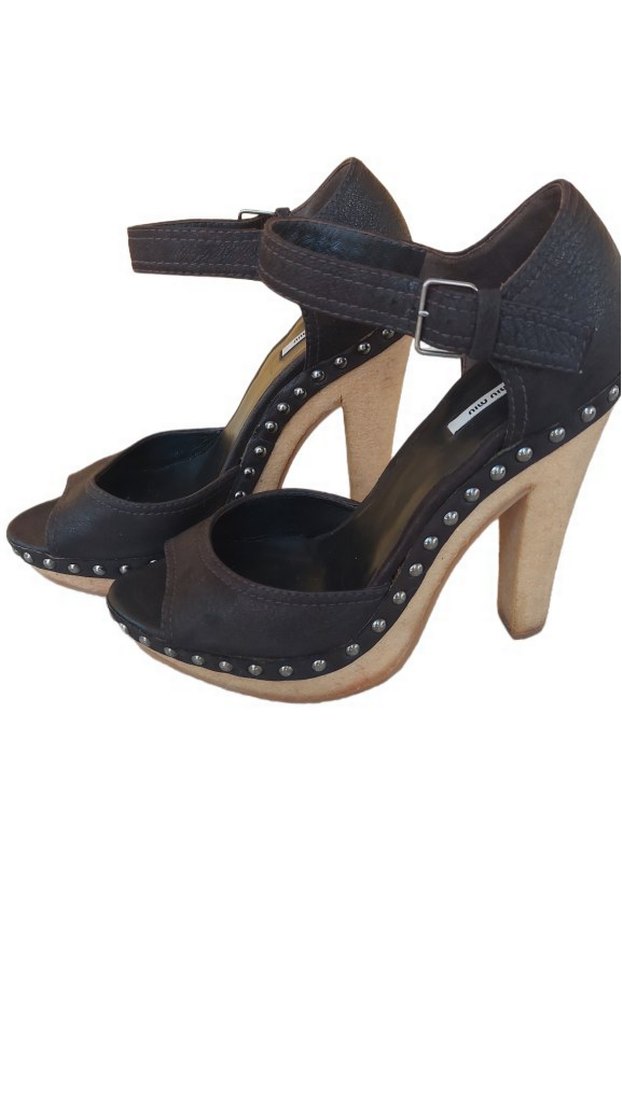 Kahverengi Süet Platform Topuklu Ayakkabı Miu Miu