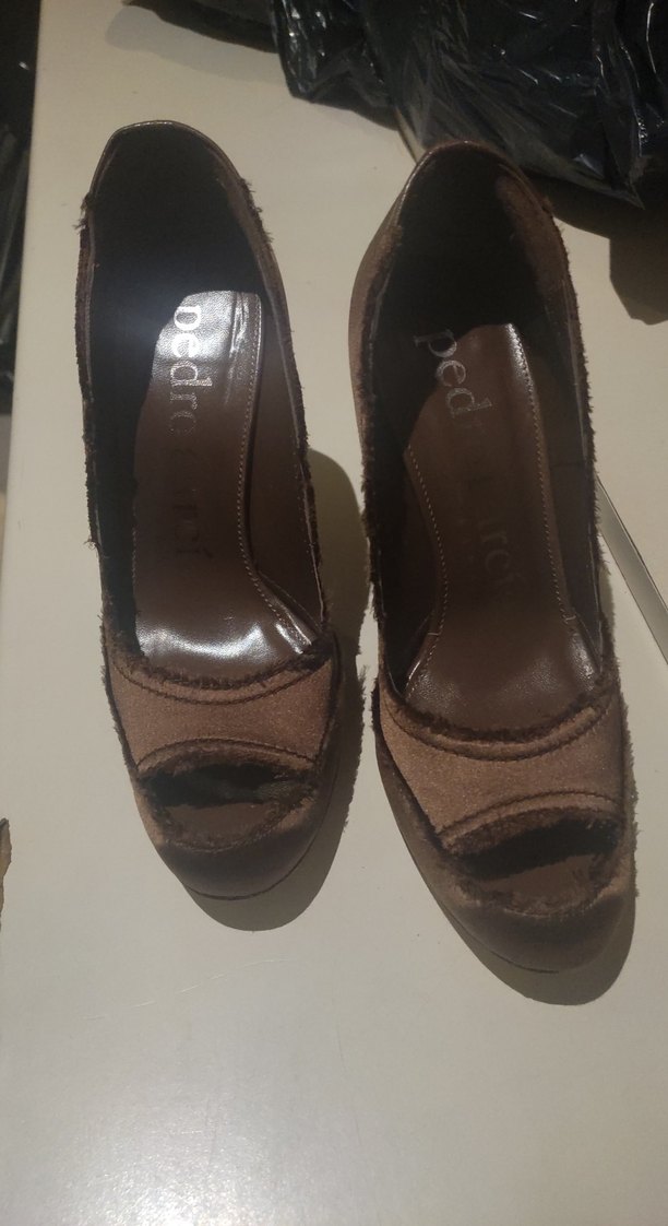 Kahverengi süet platform topuklu kadın ayakkabısı, tokalı tasarımla. Romantik gece için çağdaş ve modaya uygun. Desensiz şık model.