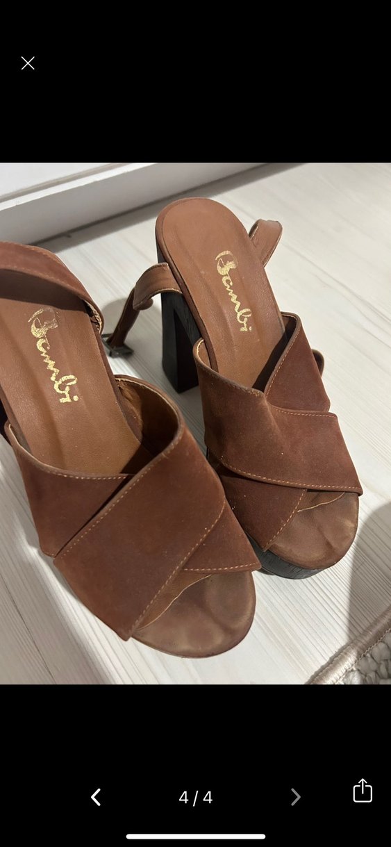 Kahverengi süet platform topuklu, tokalı kayışlı, bohem vintage tarzında kadın ayakkabısı. Günlük kullanıma uygun, koyu renk ve desensiz.