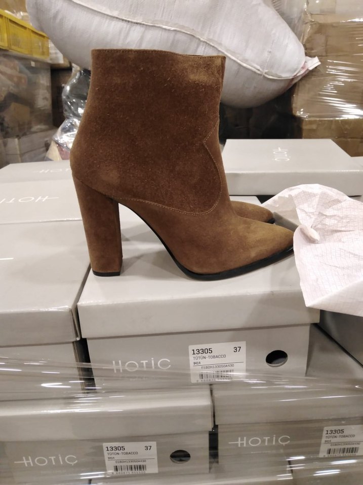 Kahverengi süet malzemeden yapılmış, yılan desenli ve tokalı, stiletto topuklu kadın botu. Şık ve trend görünümler için uygundur. normal fiyatının çok çok altındadır.36,37,38,39 numaralari mewcuttur.