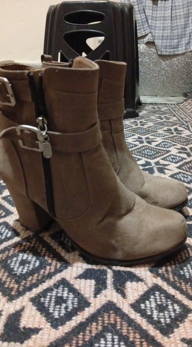 Kahverengi Süet Tokalı Kadın Bot bir kez giyildi